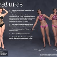 - On the fly conversion of Genesis 2 Female and Genesis 2 Male poses to your Genesis 9 figure