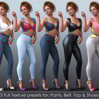Includes 3 pieces of clothing: Top, Pants, and Shoes. Along with 5 highly-detailed full presets, there are lots of options to customize each piece so you can style them to your scenes.