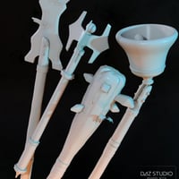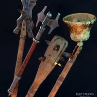 This Prop pack includes five unique and interesting weapons, ranging from a simple club to bell-festooned bludgeons to a nasty spear that would make any villain proud. The bell weapons are rigged and posable, and the large one is used as scenery since most characters lack the heft to wield such a massive weapon.