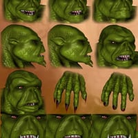 He comes with 4K textures and displacement maps in three different colors, green red and brown, plus 7 different eye presets. He has some great head morphs, which include Happy, Sad, Angry, Close Eyes/Mouth human-nose (Teeth Orc1, Orc2, Round) Elf-Ears. Also there's a bonus FingerNails-In morph to give you full control over how long you want the finger nails.