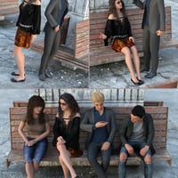 This 3D digital pose set contains 6 two-person vignette poses, and 1 four-person vignette pose, and also includes single stance versions of each pose zeroed out on the X & Z axes. In addition, for your convenience, you will also find FeralFey's Vignette Handle to help you move your characters to where you want them in your scene. Simply load the handle, parent whatever figure(s) you are wanting to use, and then either manually move the handle in your scene, or use any of the included 14"go-to position" poses for the POI Bus Stop 1 set. (The FeralFey Vignette Handle will work with ANY "go-to position" poses in her sets.)