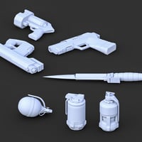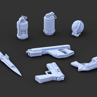 Equip your BW Cyberblade Operative with precision - introducing advanced weaponry. From sleek knives to powerful pistols and explosive grenades, these intricately detailed accessories enhance the authenticity of your digital scenes.