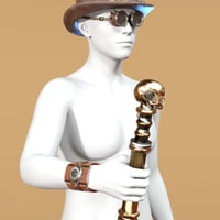 Add a touch of steampunk to any scene with BW Steampunk Accessories for Genesis 9, complete with a steampunk-inspired watch, hat, pair of glasses, and cane.