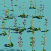 Fifteen models in three colors all of which are great for use in instancing - as always a little goes a long way and one model and its instances with slight variances in scale and the y rotation value can look like many different plants! Great for adding swathes of color to your scenes with out bringing your system to its knees!