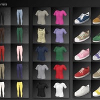 This pack also contains print overlays for the T-shirt which can be applied to any base texture, as well as separate materials for the jeans button so you can exchange those, too.