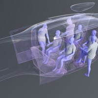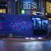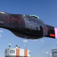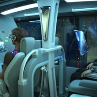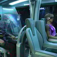 Car Levante is an automatic flying car. The four-seater car body is made of carbon fiber in a futuristic style. The car has four anti-gravity engines and one rear traction. The set includes eight exterior and interior colors. Genesis 9 passenger poses are also included.
