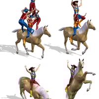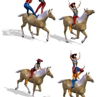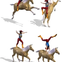 The side-riders arching combo pose will also fit with several of the bareback horse riding and standing poses. You can put several 3-performer combinations of riders together.