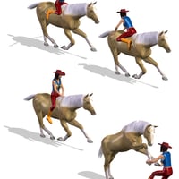 Horse rider poses are matched to horse poses. Rider and galloping horse poses can be mixed with little or no tweaking.