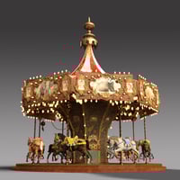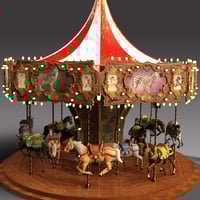 Go around and around with this vintage Carousel with wooden horses, barrel organ and pompom.