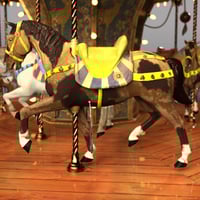 An ideal setting for your romantic scene, the Carousel turns and the horses can go down and up. This set includes 4 colors of horse dress, saddle, and harness!