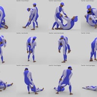 Carrying Him Pose Pairs for Genesis 9 is a pose set of a male figure carrying or dragging another male figure. All poses have been made with attention to detail, like hand posing and natural look. The set includes facial expressions and the mirror versions of all pose pairs.