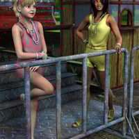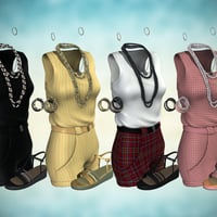 The outfit comes with four color coordinated texture options for the clothing and the jewelry. The outfit is UV Mapped to allow for tiling textures in addition to baked textures. Templates are included so you can make your own textures. Also included are four shaders: gold, silver, pearl, and black pearl which can be used with Casual Romper or any other surface you choose. Finally, in the texture folder of your Runtime, you will find the plaid, gingham, and striped patterns in a tile-able format to use when making scarves, purses, bows or anything match the outfits.