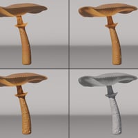 The shelf mushrooms and honey fungus share UVs and textures and also come with a grayscale version of their BaseColor and Emissive maps so that you can use the color wheel to make them any color possible. They also come with three variations of textures so you can have even more variety when it comes to their emissive patterns and their spots. Included are also options to make the emissive surface two-sided (or not) which allows the emissive light to shine through the top of the mushrooms. Remember to also play with the translucency colors to create even more wonderful effects!