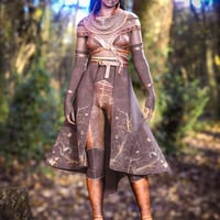 Leather, Suede, and Chainmail are combined to give a brighter more armored feel to this look.