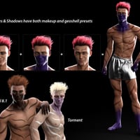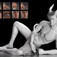 CC Acacios for Torment 8.1 is an HD character that comes with a full-base skin, a fair-skinned variant, and 6 variant, devilish skins that utilize transmission and not extra maps. He has custom claws for both hands and feet and a slit-pupil option that comes with a dilate-constrict dial. He also comes with extra details for Torment's tail including spike details, spike removal, thickness, shorter, and straight-ended shapes. He has his own custom, fibermesh brows that come with 3 shaping dials and 21 materials that are also compatible with CC Beard Boss and CC Shave This materials.