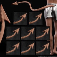His fingernail claws, toenail claws, horns, and tail spikes all come in 8 materials: blue metal, bone, gold, iron, jade, obsidian, pearl, and steel. He also comes with Torment tail materials to match all of his skin variants. His tail spikes utilize a geoshell that can work to add a little detail to any character.