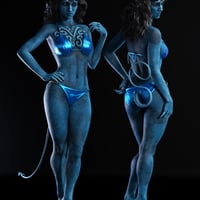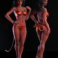 Her claws, hooves, and horns all come in 8 materials -- slate, bone, pearl, obsidian, iron, patina, oily and gold -- as well as materials to match Infernal Wings for Genesis 8 Male(s) and Genesis 8 Female(s), and also include 11 emissive options. Her tail comes with materials to match each of her base skins, 5 scaled options, options to match Infernal Wings for Genesis 8 Male(s) and Genesis 8 Female(s), and two opacity options for the tail cover -- full and top only.