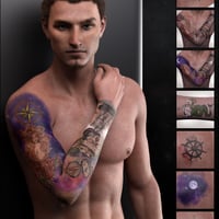 He also comes with a selection of tattoos that can be used on either his hairy or smooth options. He has 3 choices of sleeves for his right arm, 1 left inner forearm option, 3 lower abdomen options, 3 back left shoulder options, 1 neck option, and 1 anatomical element option.