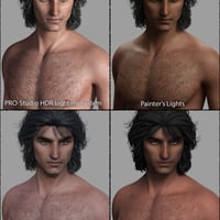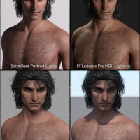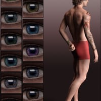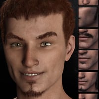 Options that will work on almost any Genesis 3 Male character include an eye scar (textures and HD morphs), dueling scars (texture and HD morph), fibermesh facial hairs (eyebrows, sideburns, mustache, soul patch, goatee and full beard) and 2 eye blacks.