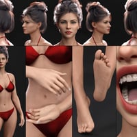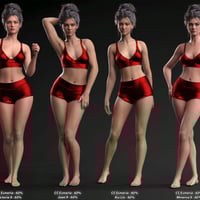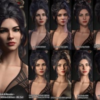 Her form includes full, body, and head shaping presets, offering flexibility for both standalone renders and blended custom creations. Esmeria's richly detailed PBRSkin comes with both full and reduced normal maps, plus three shine variations to adapt to any lighting environment.