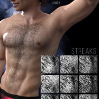CC Shave This is a fibermesh body hair set. The chest & stomach hair has 24 shapes (which can be used alone or combined) as well as 5 modifiers that will only affect the hair that is active. Arm hair can be full, upper or lower only and also has 5 modifier morphs. Leg hair can be full, glute, upper or lower only and has 6 modifier morphs. Armpit hair can be full, a little less or minimal with 4 modifier morphs. Knuckle hair can be full or removed from certain fingers and has 4 modifier morphs. Back hair has 5 modifier morphs. Both anatomical element hairs have several morphs available.