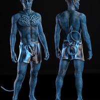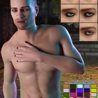 In addition, he has two pupil shape options -- slit and goat which both come with a custom dilate-constrict dial. He also comes with his own tail, horns, fibermesh brows, lashes, beard, chest hair and anatomical elements hair (all hairs compatible with CC Beard Boss and CC Shave This materials).