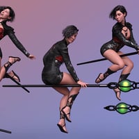 Genesis 9 flies high through the night sky on a magical journey with this set of 20 riding hierarchical poses with expressions for Genesis 9 and the Plain Staff and Orb Lantern Top from the Staff Pack.