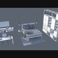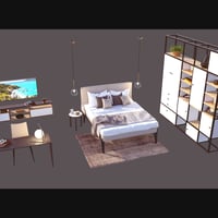 This furniture set contains 24 separate props and 4 subset groups for indoor bedroom scenes that are comfy, cozy, and designed to please your characters.