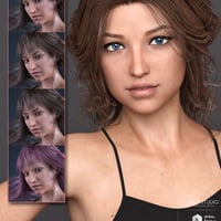 Her make up utilizes the LIE Material System; There are 3 Blush, 6 Lipstains, 7 Eyeliners, and 7 Eye Shadows can be used on any Genesis 8 Female figure.