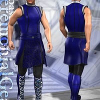 This timeless and versatile outfit will match modern and fantastic renders in equal measure. It is at home in science fiction settings, medieval worlds or modern times alike and unites shamanistic inspirations with a modern touch.