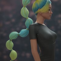 Chanelle Dream Hair is a morphing, polygonal model of a long, bubbled, high ponytail. The hair is fitted for Genesis 9 (.DUF) with auto-conforming custom morphs for Daz Original characters.