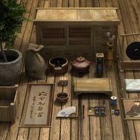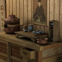 A traditional set for Poser and DAZ Studio, designed to compliment my Oriental Garden Sets, the tea house features a highly detailed interior and exterior with opaque sliding doors. The entire back wall is removable for access into the preparation room and the sliding doors can be opened for access into the tea room. DS Mats are also included.
