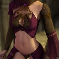 Two charming, richly detailed texture sets for the Eweyai outfit. Choose from soft, sheer mauve with gold trim, or bold red with black motifs.
