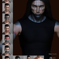 Chayton for Dasan 8 and Genesis 8 Male(s) is a character with facial sculpts from Zbrush and Hexagon and LIE Face Paint Presets based off of photographs of different members of the North American Native Tribes, with some artistic license concerning the designs.