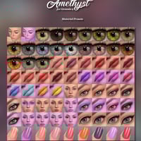 She boasts two distinct skin options: a natural human texture and a captivating fantasy purple hue. Each skin choice is accentuated with specially designed makeup presets, ensuring Amethyst always looks stunning. Want to tweak her lip shade? Use the Custom Lips material presets.