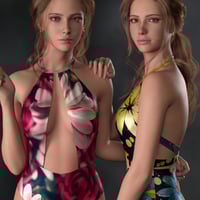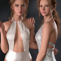The Fiona Bundle for Genesis 9 includes an elegant character, bodysuit, and earrings for Genesis 9. It includes a texture expansion for more material options.