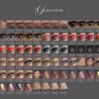 This character set includes a variety of appealing presets to customize Genevieve's look: 7 eyebrow colors, 9 eye colors, 11 lip colors, 3 lip gloss options, 4 lipstick intensity presets, 9 makeup options, 10 nail colors.