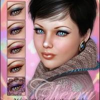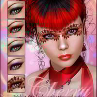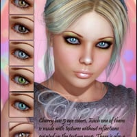 Cherry is a beautiful character for V4. She has MAT files for both Poser and DAZStudio. The DAZStudio users can choose the simple mat files or the advanced shader files that need the Elite human surface shader in order to look right. The pack contains five eye textures without reflections painted on the texture map and a reflection that can be applied when needed.
