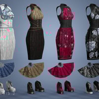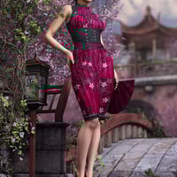 Bring the Cherry Blossom Dress for Genesis 2 Female(s) into full bloom with this collection of Four Texture Sets. Includes textures for dress, hand-held fan and shoes.