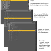 In Chesterhaven, structures can be moved, hidden, scaled and instanced separately. Window lights can be turned on & off in the scene tab, simply by hiding them. Or stack up the buildings and make a unique structure all your own!