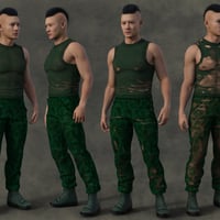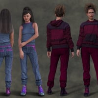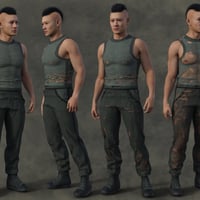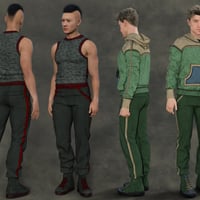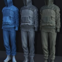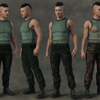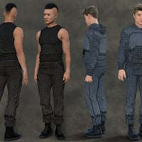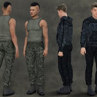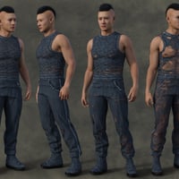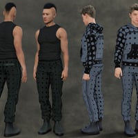 I have also included rips or tears. Why? Considering that you might need clothing both before and after a fight or casualty scene. You can opt to add a "rip" look to the sneakers, pants, tank top, or hoods (both open and closed) with this ensemble. Simply pick your material, then add rips. There are three levels or rips called "Ripped 01", "Ripped 02" and "Ripped 03", with "Ripped 01" being the least intense and "Ripped 03" the most intense.