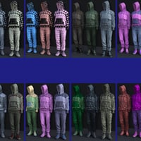Each piece (tank top, pants, sneakers, open hood, and closed hood) comes with 5 textures. Each texture comes with six colors.