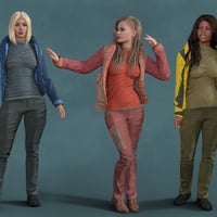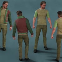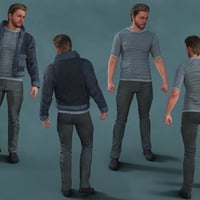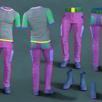 This everyday clothing set includes boots, pants, a shirt, and two jackets. The two jackets look almost the same but one is more open than the other. The more open is good for female characters because it reveals the breasts and the hip (please see promos).