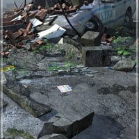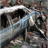 A ruined vehicle diorama ideally suited as a background object to Stonemason's 'City Ruins' Buildings. Comes with 3 texture variations plus a bonus clean version of the Police car.