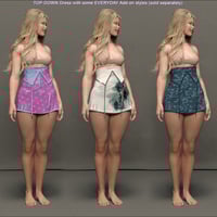 Included are 5 dress / top styles for a mini wardrobe that is as versatile as it gets thanks to the differences in dress / top shape and the availability of a different range of add-on styles.