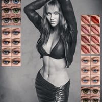 She has plenty of extras, including three distinct skin tones and three skin shine options, tones of lip gloss, and three different levels of eye reflection.