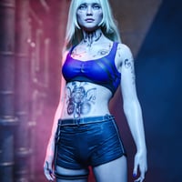 Fully customizable, she features a striking body tattoo, a full body dirt and grime overlay, and an alternate "gritty" head texture for added edge. Enhance realism with extra layered freckles, positive and negative head bump LIE's, creating more natural skin bumps or skin pores, and a unique customizable dual color eye shader featuring 10 vibrant presets. Add drama with LIE makeup, lip colors, and a high impact sweat shader for that perfect skin shine.