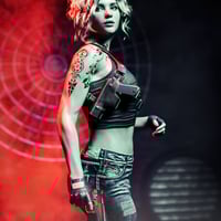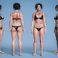 She includes PBR material presets, body tattoos in three colors, a complete set of unique eyes, makeup, fiber-brows and matching brow and lash colors, and lots of lipstick colors. She also comes with plenty of extras for different skin tones, skin shine, lip gloss and three different levels of eye reflection.