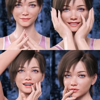 She includes PBR material presets, four expressions, face and body tattoos, a complete set of unique eyes, makeup, fiber-brows and matching brow and lash colors, and lots of lipstick colors. She also comes with plenty of extras for different skin tones, skin shine, lip gloss, and three different levels of eye reflection.