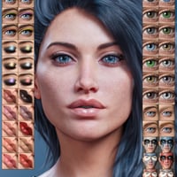 She includes high-detail realistic skin textures, a full head and body shape preset, and separate head and body shape presets.